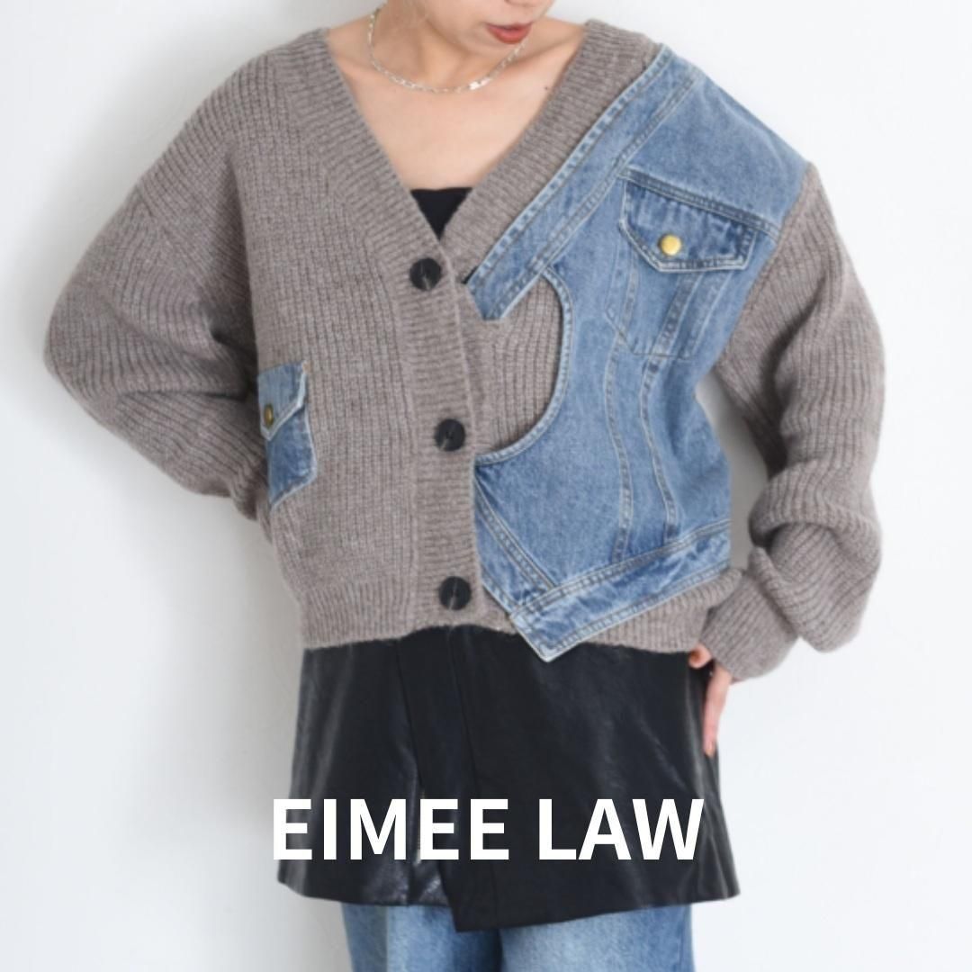 エイミーロウ Eimee Law テキスト刺繍リラックスベロアパンツ 84567L-2-ネイビーグレー