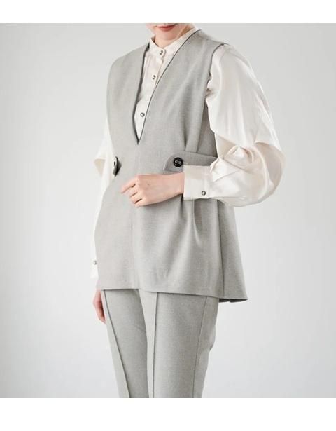24,200円送料無料 ラリアムー Lallia Mu Vカットストレッチベスト 2514610 ストレッチ ベスト ジャージー 起毛 Vネック マニッシュスタイル 大人 抜け感 GREIGE