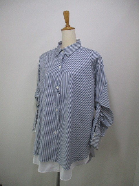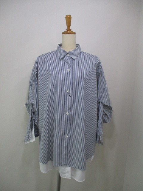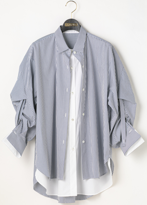 Lallia Mu,レイヤード,シャツ,ストライプ,デザイン,大人,モード,アシンメトリー,ボリューム,リラックス,洗練