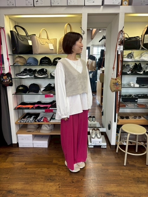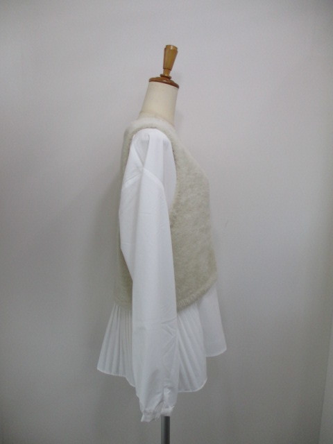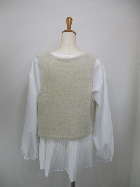 秋冬にぴったりのフェザーベストとプリーツブラウスのセット。