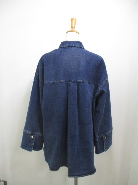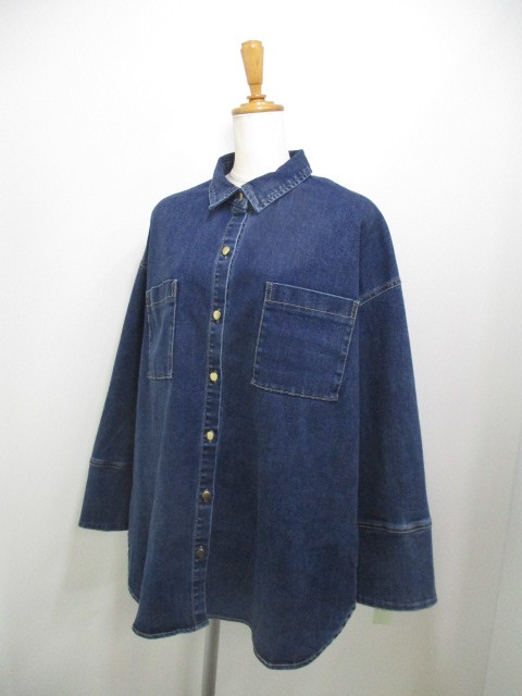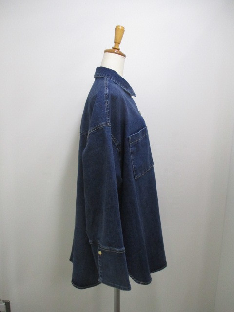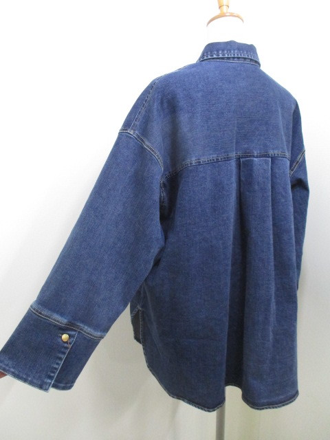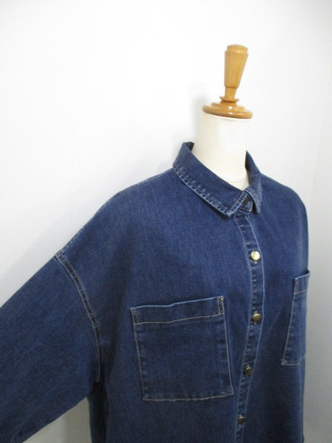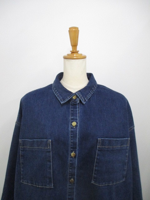 新作ストレッチデニムオーバーシャツ!シャツとジャケットの融合、大人カジュアルにぴったり。洗い加工の色落ちが絶妙。ゆったりサイズ、ゴールドボタンがエレガント。ラウンド裾&折り返し袖口、着こなし自在。厚手インナーでもストレスフリー♪ #ストレッチデニム #大人カジュアル