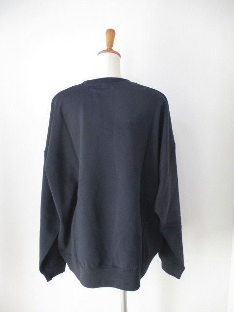 程よいシルエットのネイビーのスウェット。デイリー使いに最適で、コーディネートの幅が広がる一枚です。