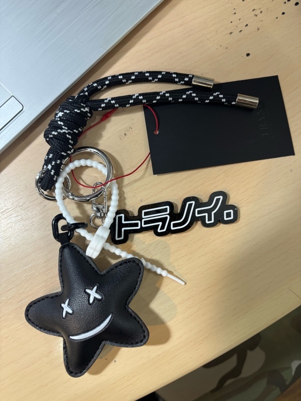 魅力満載のTRANOI. star charm 214R612!大人カジュアルにぴったりな黒チャーム。ブランドネームプレートがラメで輝き、パラコードもアクセント☆お好みの組み合わせで楽しめる取り外し可能!#ブラックチャーム #大人カジュアル