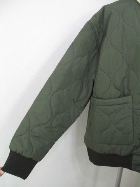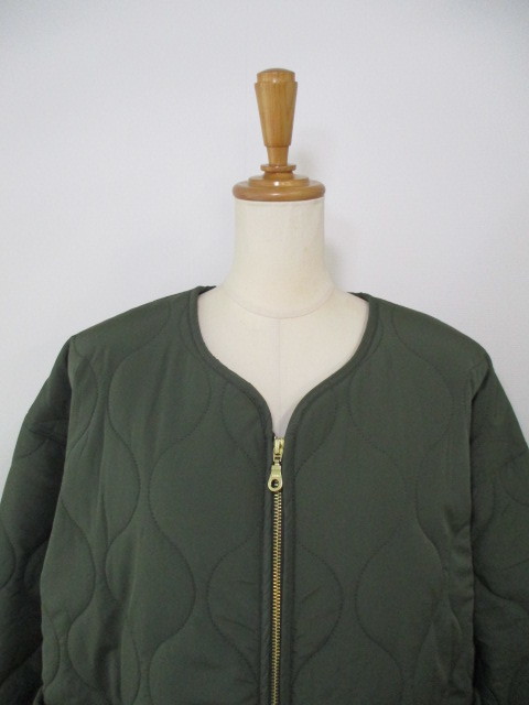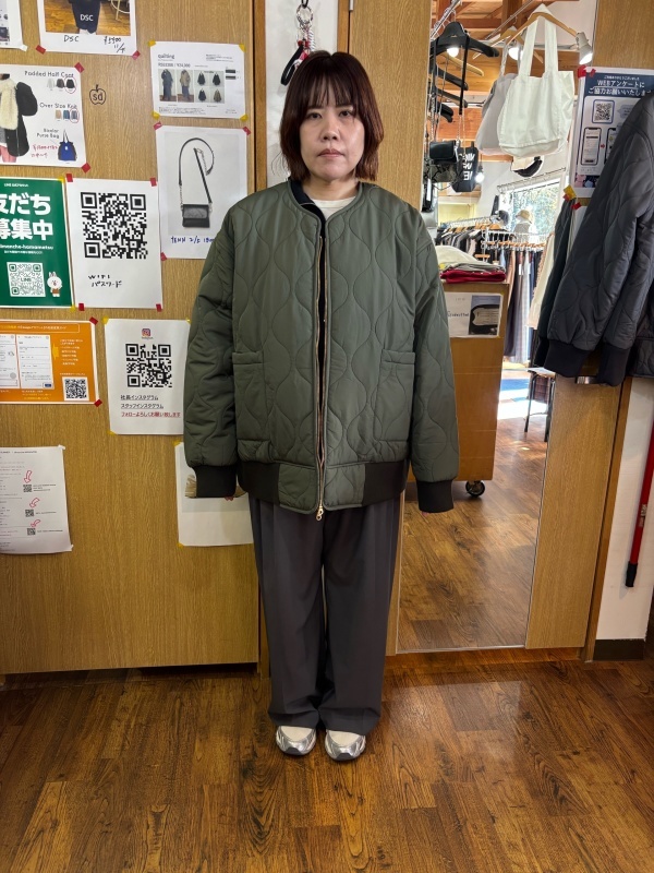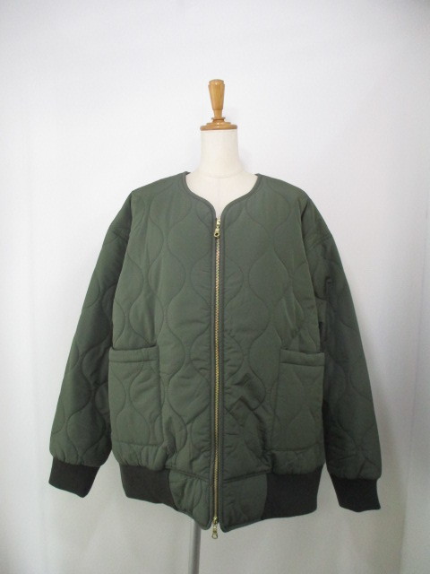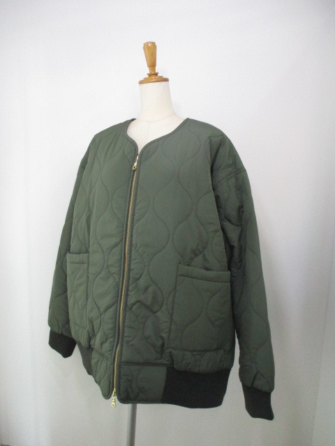 キルティング,ブルゾン,MA-1,軽量,防寒,カジュアル,秋冬,おしゃれ,ジャケット,カーキ,大人,ステッチ,ゴールドファスナー,ノーカラー,耐久性,ボリュームシルエット,スタイリング